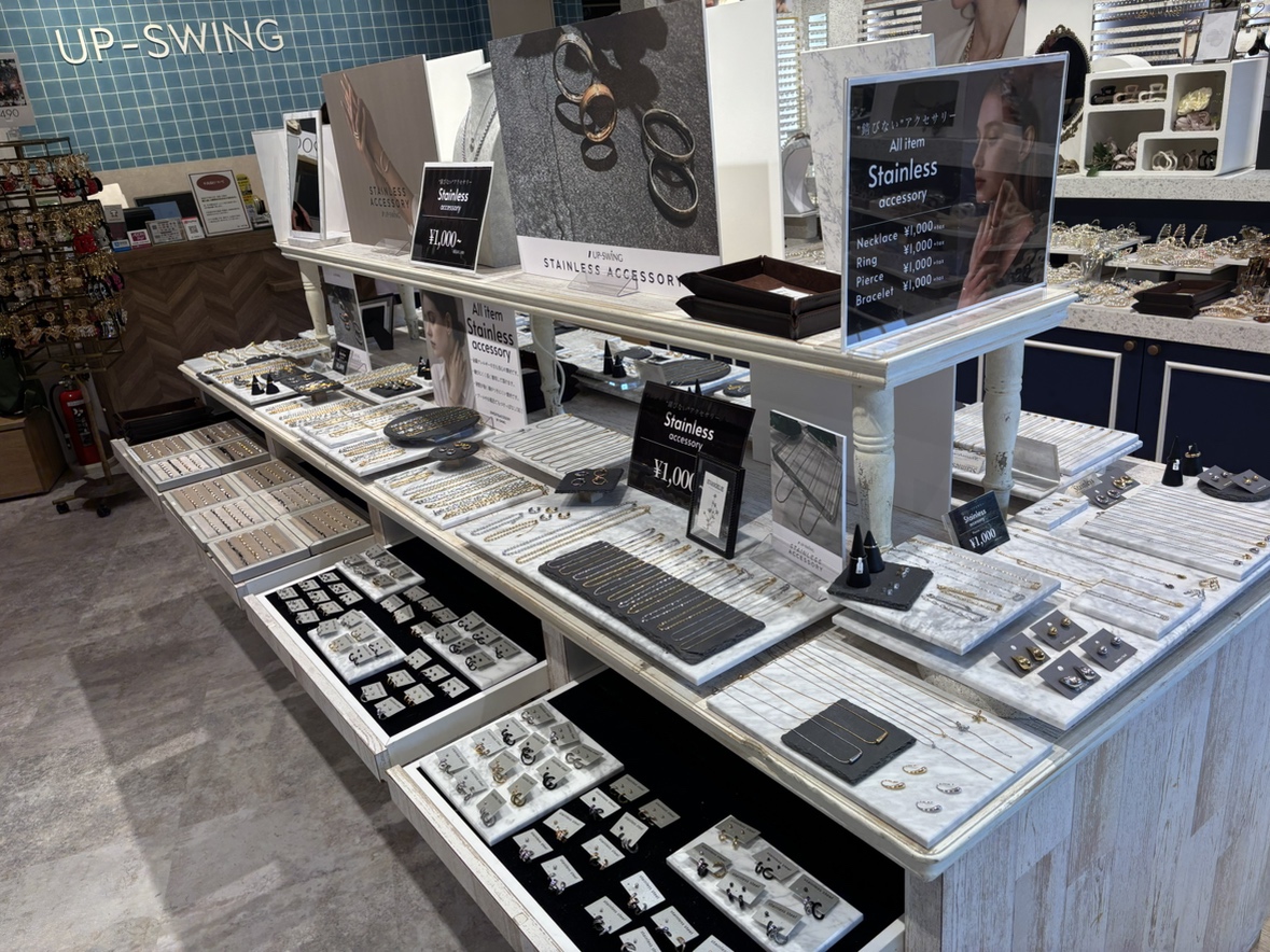 アップスイングは、アクセサリー・雑貨の販売ショップを運営する会社です。1998年、鹿児島に1号店をオープンして以来、お手頃な価格で良質なアイテムをセレクトすること、そして地域のお客様に寄り添うことを大切にショップを運営してきました。現在では、九州を中心に7県でショップを展開。アイテムの取り扱い点数も、九州において業界トップクラスの規模へと成長を続けています。